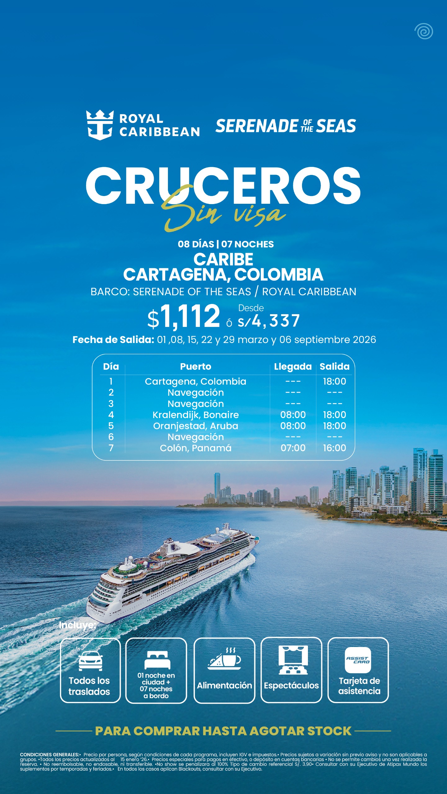 | Caribe / Cartagena, Colombia (08 días / 07 noches) – 08 marzo 2026 | $ 1,107.50 | ver programa |