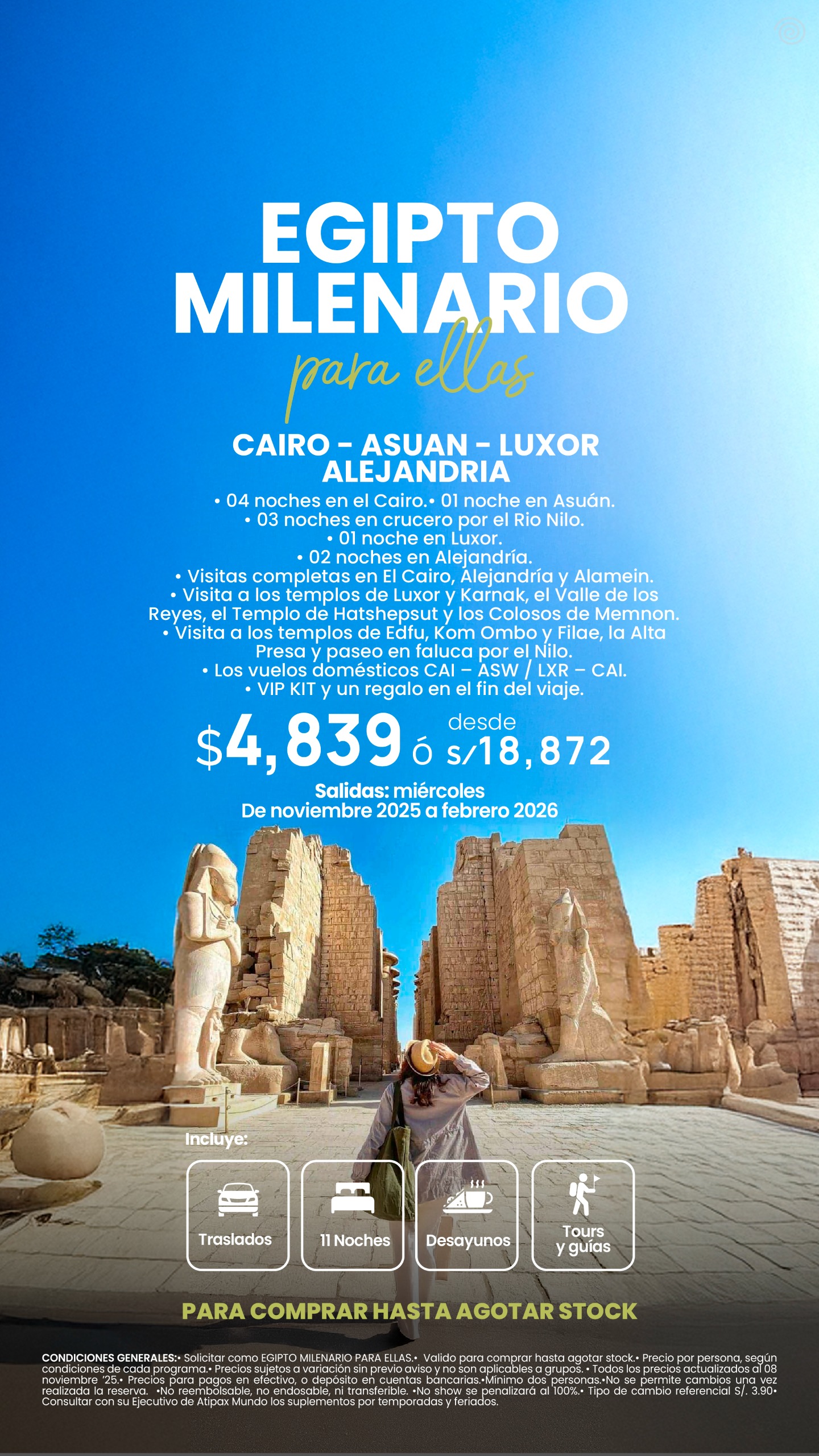 | Egipto Para Ellas (09 días / 08 noches) | $ 2,889.00 | ver programa |