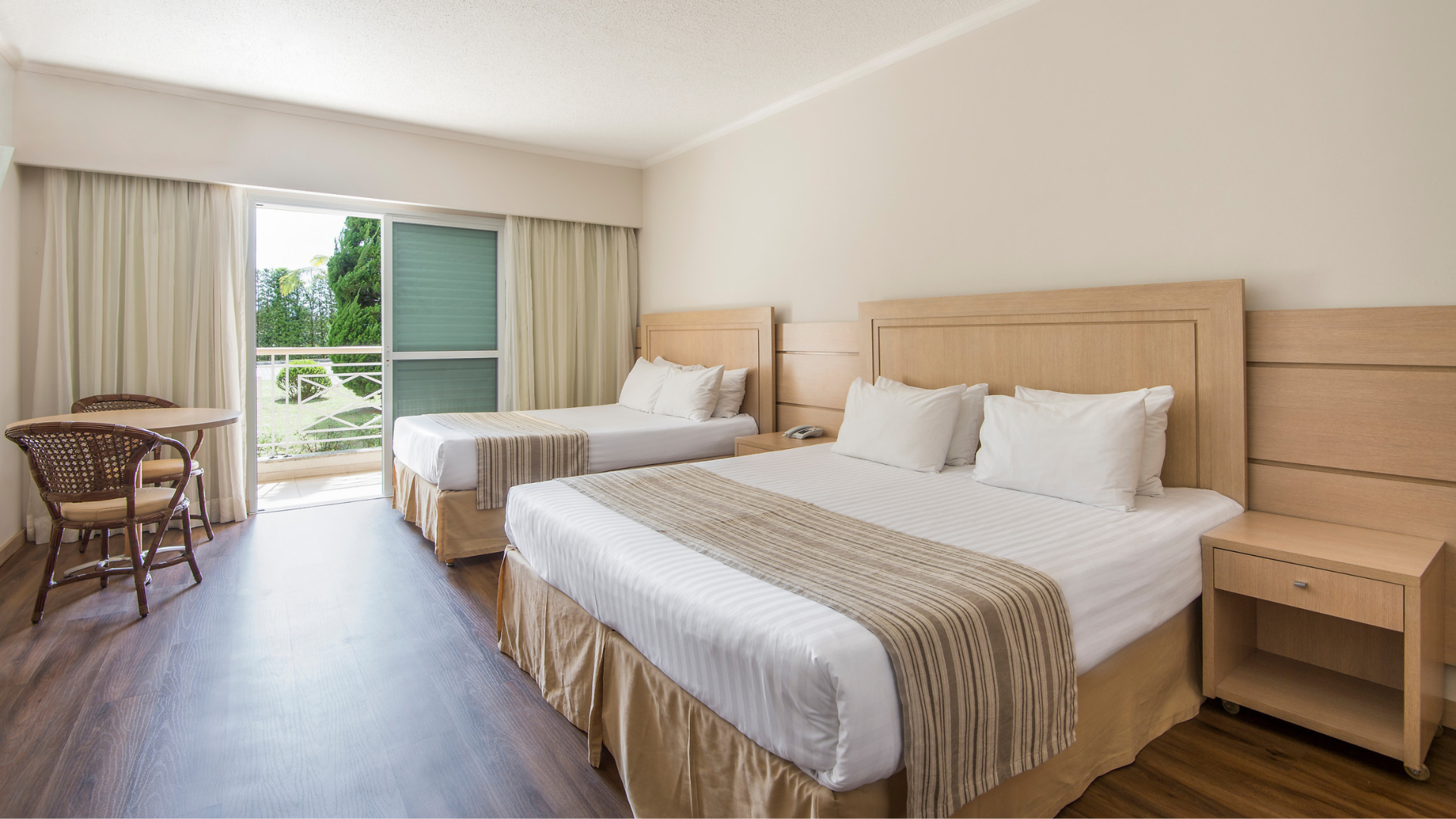 Situadas en la orilla del lago con una vista nítida a los jardines y el agua, las habitaciones son espaciosas y muy luminosas. Los muebles de madera contribuyen a crear un ambiente cálido y confortable.